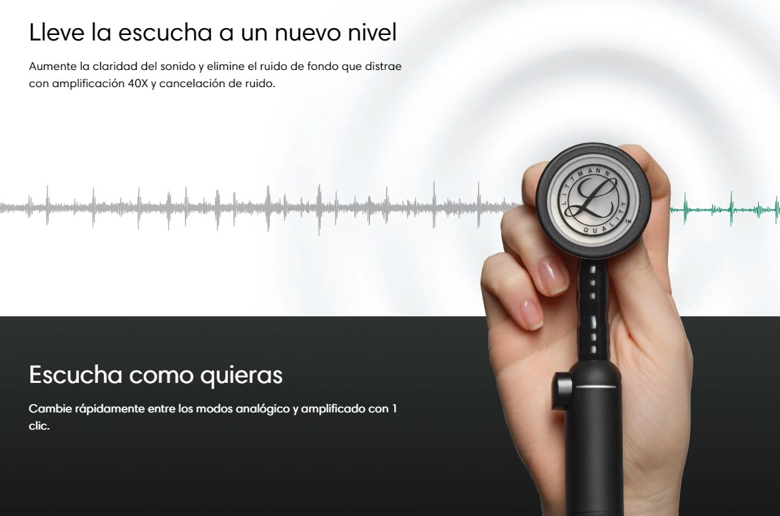 Aumenta la intensidad de los sonidos hasta 40 veces, lo que puede ser útil para auscultar sonidos sutiles o en pacientes con dificultad respiratoria.