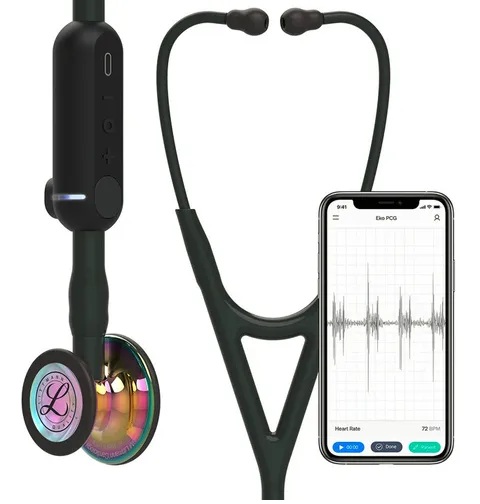 Cuenta con una campana de doble cara, tubos de nueva generación libres de látex y plastificantes de ftalato, y olivas suaves para mayor comodidad y sellado acústico.